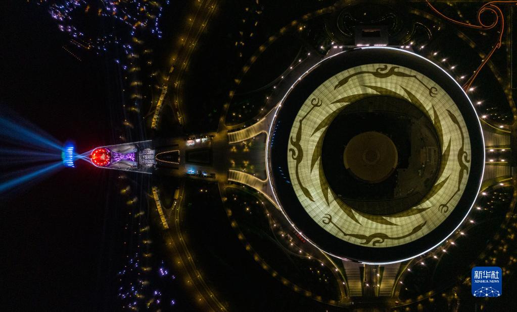 這是4月19日拍攝的第31屆世界大學(xué)生夏季運動(dòng)會(huì )開(kāi)幕式主體育場(chǎng)及主火炬(無(wú)人機照片)。