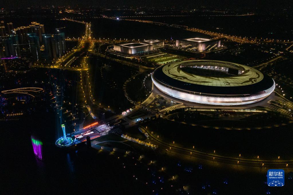 這是4月19日拍攝的第31屆世界大學(xué)生夏季運動(dòng)會(huì )開(kāi)幕式主體育場(chǎng)及主火炬(無(wú)人機照片)。