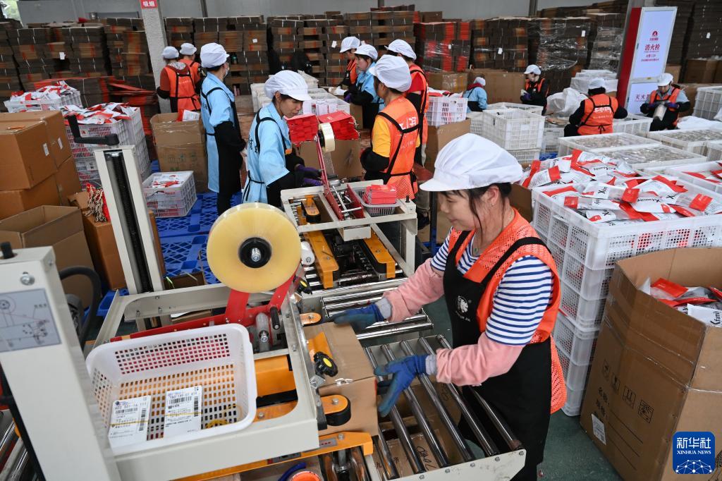 4月19日,在全國農村創(chuàng )業(yè)園區(基地)——寧德辰頤嚴選產(chǎn)業(yè)園的電商農產(chǎn)品深精加工車(chē)間,員工在包裝準備發(fā)往全國各地的農產(chǎn)品。