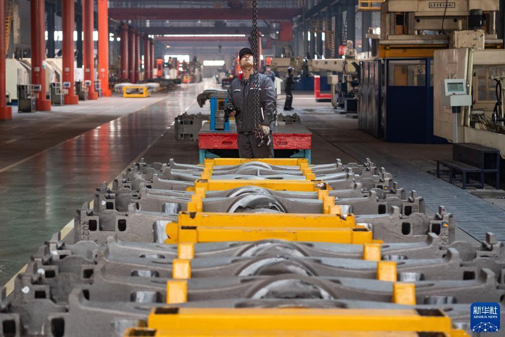 4月19日,在中車(chē)齊車(chē)公司的生產(chǎn)車(chē)間,工人在進(jìn)行生產(chǎn)作業(yè)。