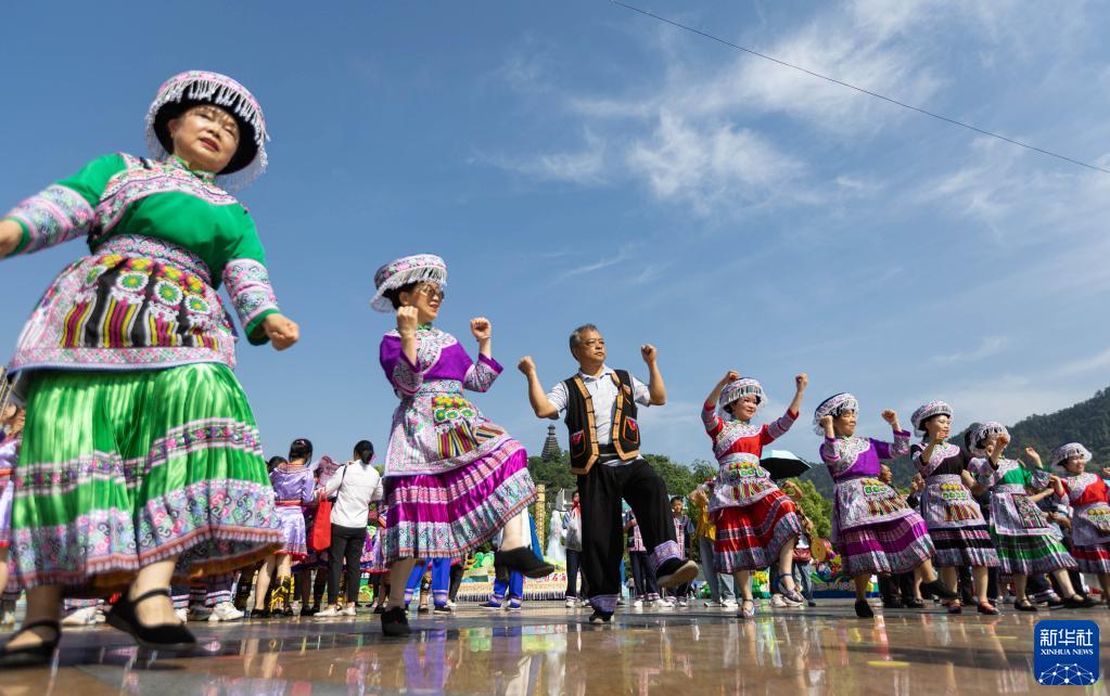 4月20日,當地群眾載歌載舞歡度苗族花山節。