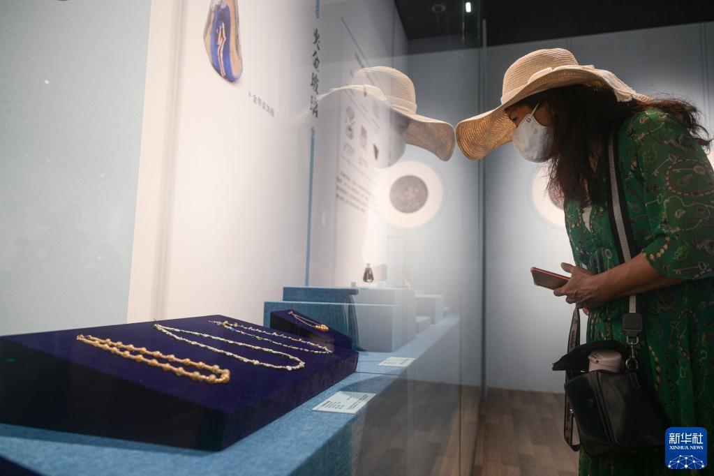 4月20日,觀(guān)眾在海南省博物館觀(guān)看“瑠光異彩——絲路上的古玻璃器藝術(shù)展”。