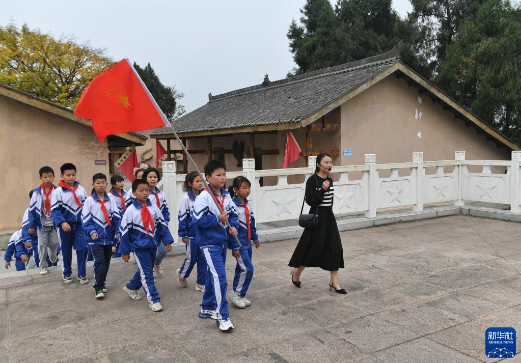 4月18日,馮煉組織學(xué)生來(lái)到紅軍街,向學(xué)生講述紅軍故事。