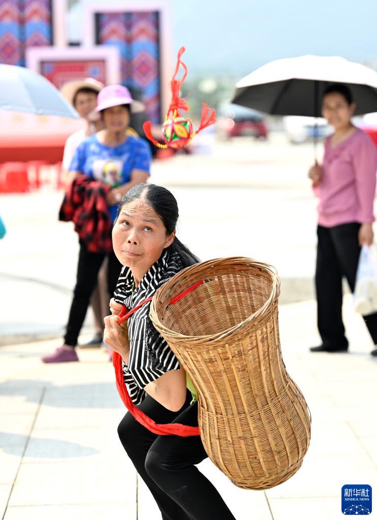 4月20日,在柳城縣鳳山鎮鳳鳴廣場(chǎng),村民參加拋繡球活動(dòng)。