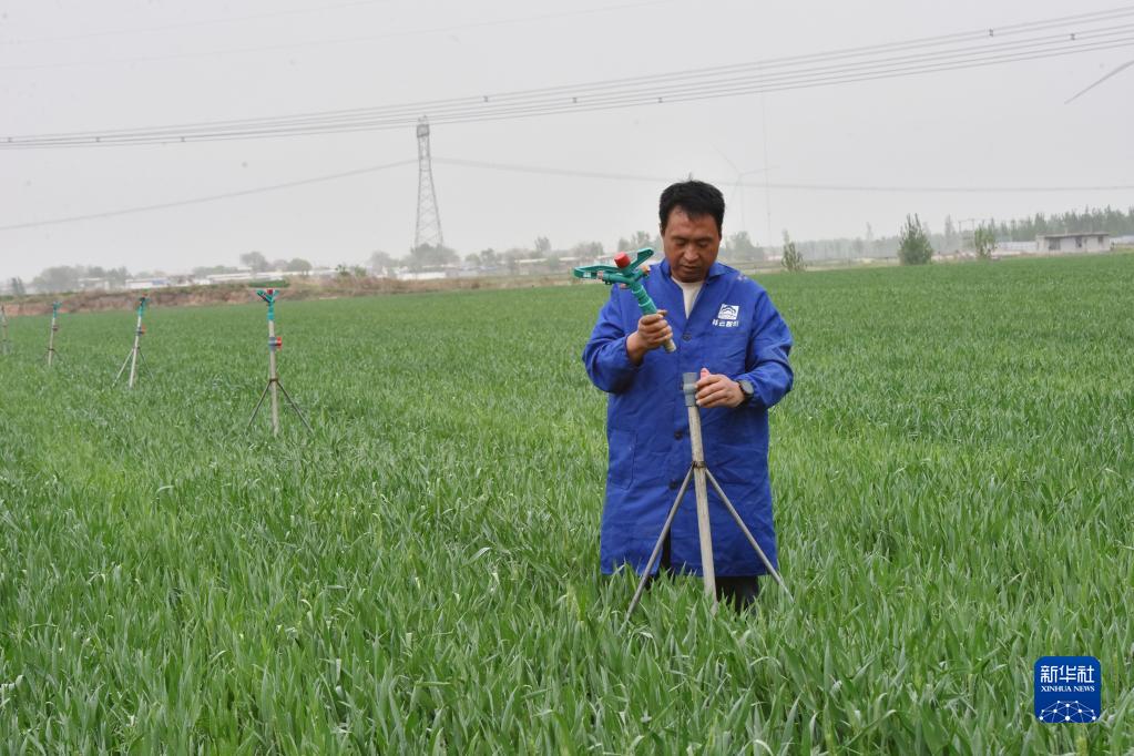 4月20日,張戰強在檢修自動(dòng)噴灌設備。