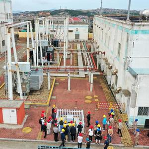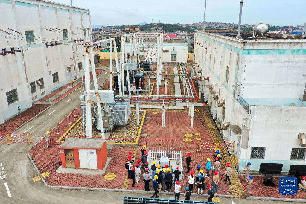 4月20日,媒體記者在福建平潭前進(jìn)變電站參觀(guān)無(wú)人機自主巡檢應用場(chǎng)景。