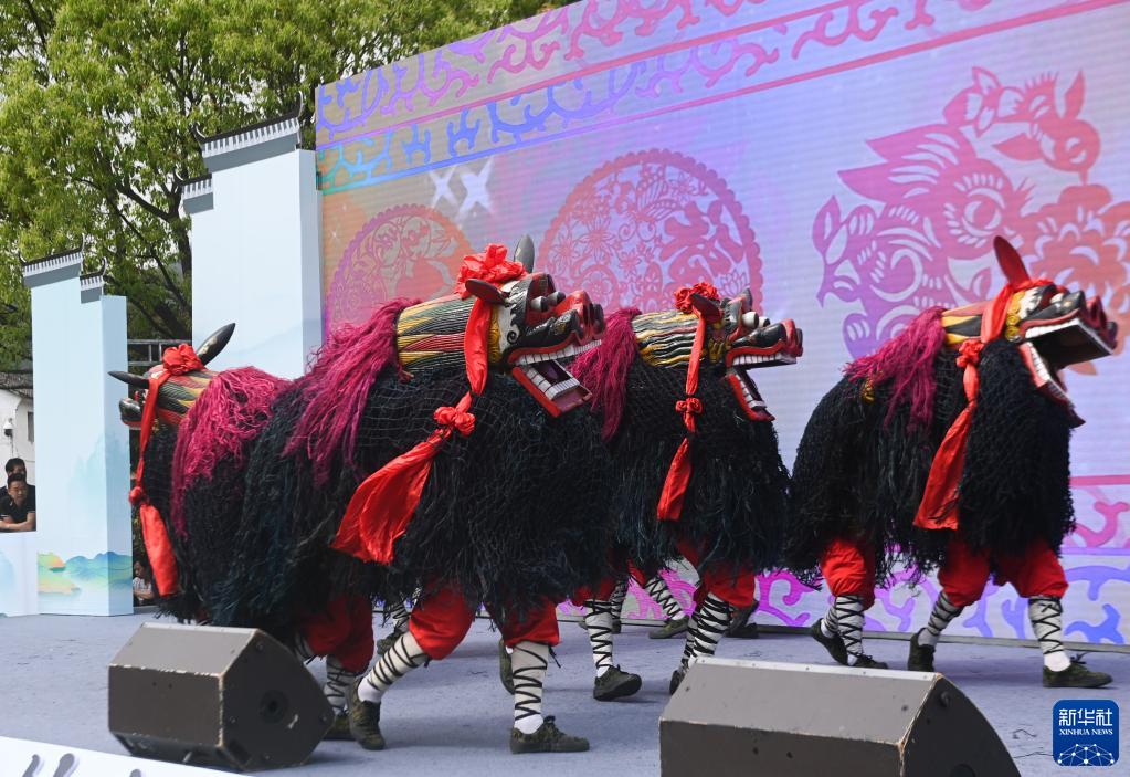 當日,以“非遺傳承、三地共富”為主題的浙江省建德市第十屆鄉村文化節暨2023建德市新葉“三月三”農耕文化節在建德市大慈巖鎮新葉古村開(kāi)幕?,F場(chǎng)舉行了“龍游硬頭獅子”“嚴州蝦燈”“李村抬閣”及昆曲等10余項非遺文化展演。