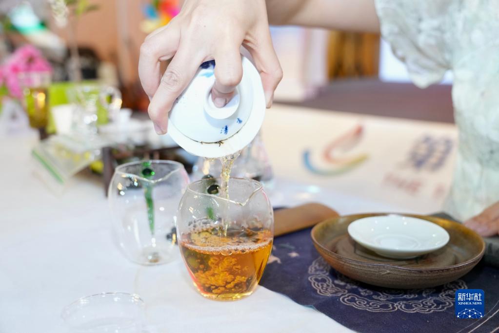 4月21日,在北京茶博會(huì )“春茶臨京城 共品非遺茶”活動(dòng)上,茶藝師在倒茶。