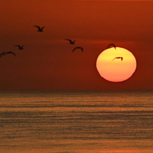 這是4月17日在科威特哈瓦利省拍攝的海上日出景色。