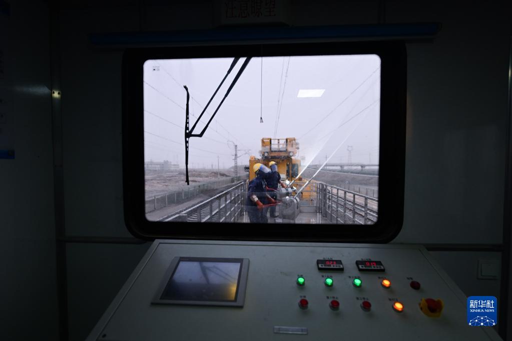 4月20日,中國鐵路青藏集團有限公司西寧供電段格爾木大修車(chē)間大修網(wǎng)工區檢修工使用高壓沖洗水槍對絕緣子設備進(jìn)行清洗。