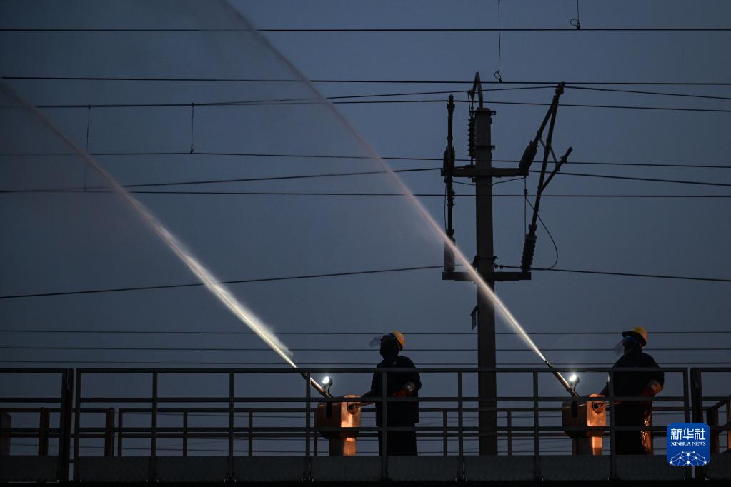 近日,為確保青藏鐵路牽引供電設備運行正常,保障青藏鐵路的暢通運行,中國鐵路青藏集團有限公司西寧供電段格爾木大修車(chē)間大修網(wǎng)工區組織人員利用沖洗車(chē)對青藏鐵路察爾汗段接觸網(wǎng)絕緣子設備附著(zhù)的鹽污進(jìn)行清洗作業(yè)。