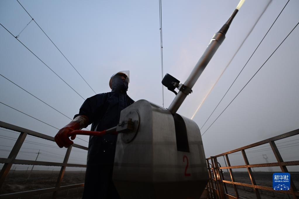 4月20日,中國鐵路青藏集團有限公司西寧供電段格爾木大修車(chē)間大修網(wǎng)工區檢修工使用高壓沖洗水槍對絕緣子設備進(jìn)行清洗。