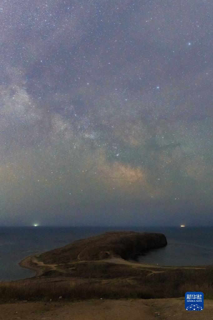 這是4月22日拍攝的俄羅斯符拉迪沃斯托克市切爾尼紹夫灣上空的銀河。
