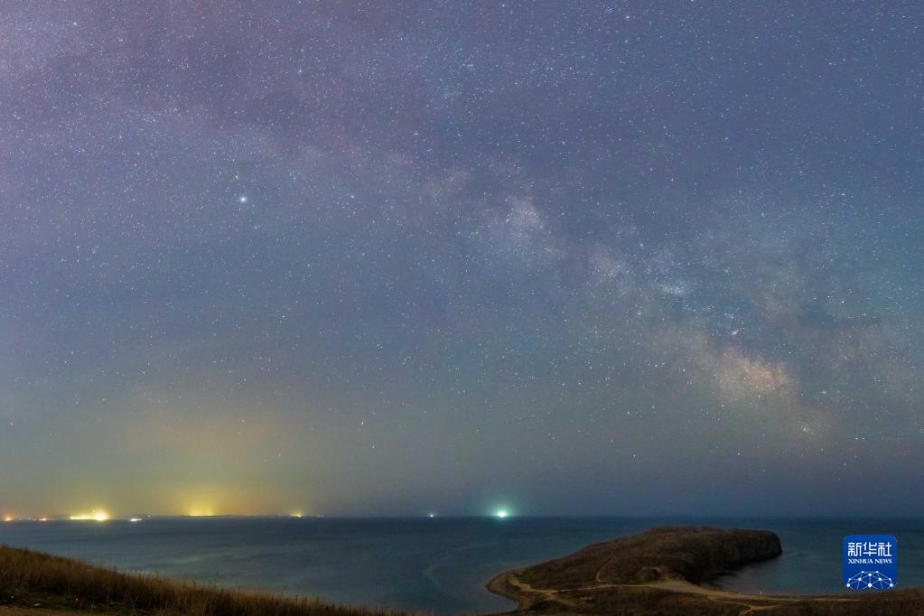 這是4月22日拍攝的俄羅斯符拉迪沃斯托克市切爾尼紹夫灣上空的銀河。