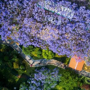 近日,位于云南省昆明市教場(chǎng)中路的藍花楹綻放,吸引市民和游客前來(lái)拍照打卡。