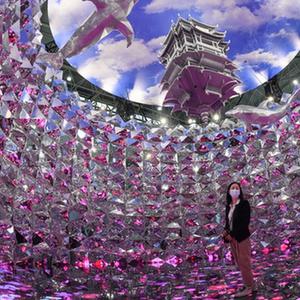 4月22日,觀(guān)眾在“無(wú)限之鏡”展廳參觀(guān)。