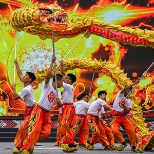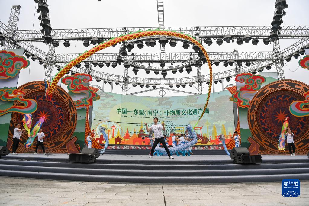 4月22日,在中國—東盟(南寧)非物質(zhì)文化遺產(chǎn)周開(kāi)幕現場(chǎng),演員在表演舞龍。