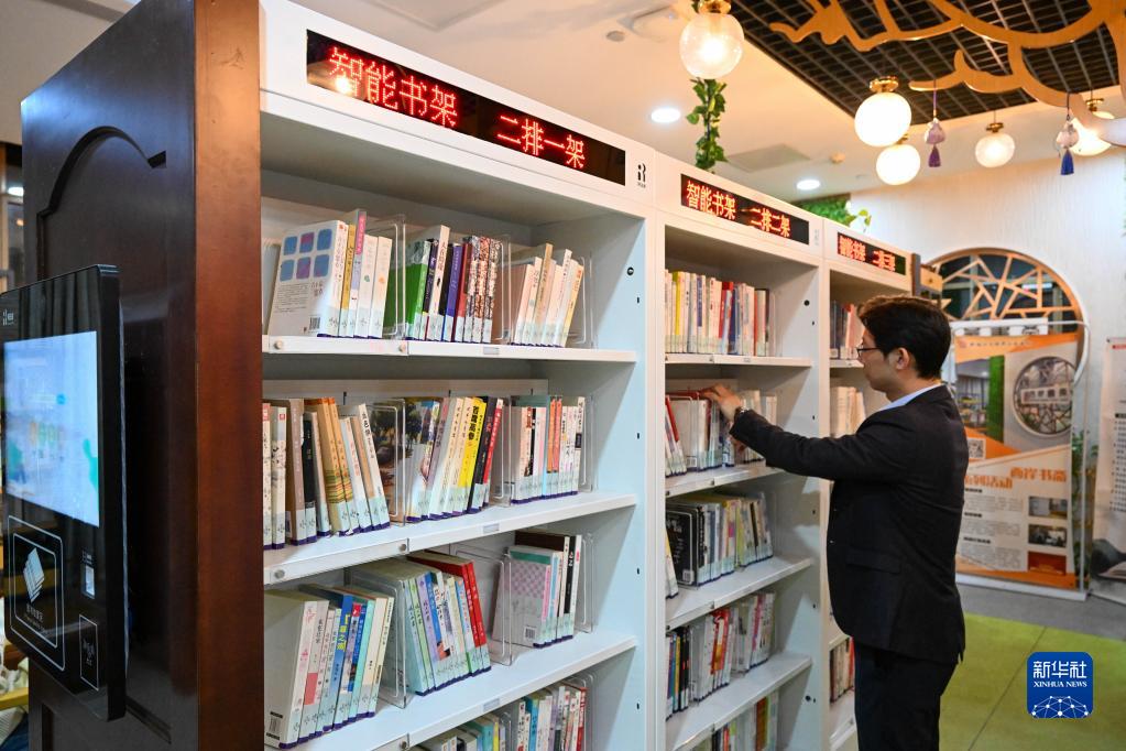 在天津市河西區新梅江文體中心西岸書(shū)齋,工作人員將圖書(shū)放置在智能書(shū)架上方便讀者快速檢索(4月19日攝)。