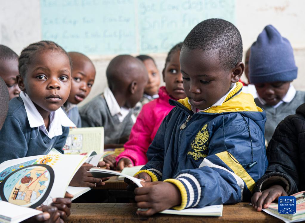 4月19日,在肯尼亞內羅畢馬薩雷貧民區的一所小學(xué),孩子們在教室讀書(shū)。