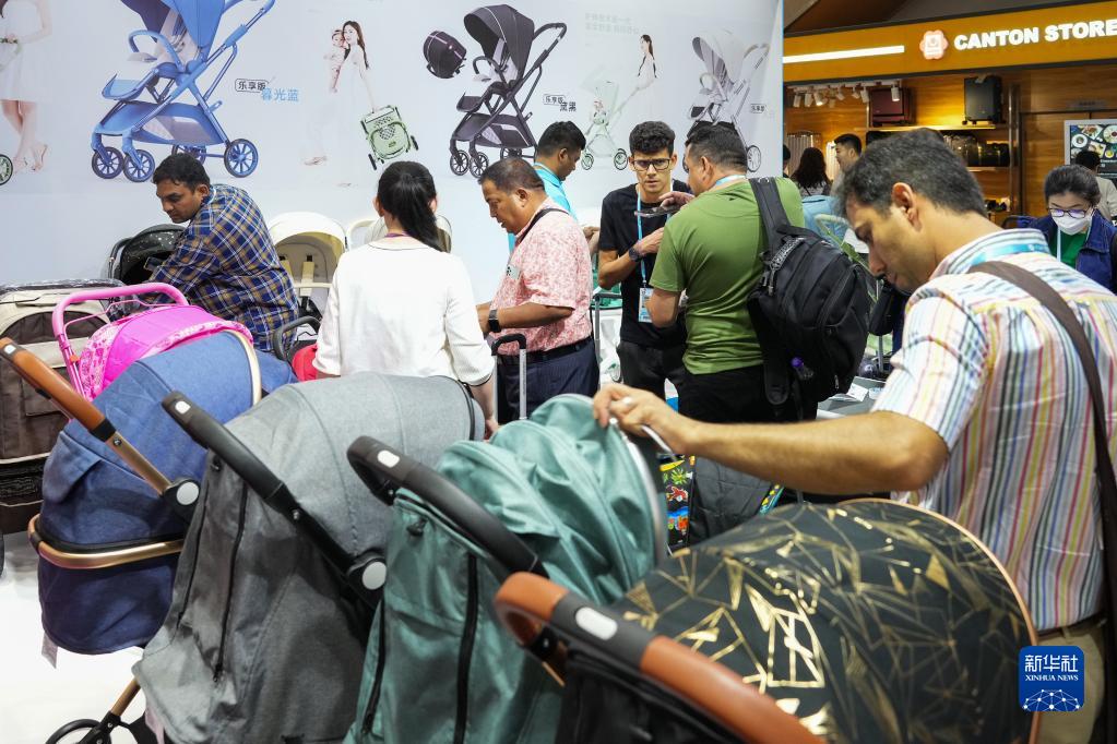 4月23日,采購商在第133屆廣交會(huì )二期孕嬰童展區了解童車(chē)產(chǎn)品。