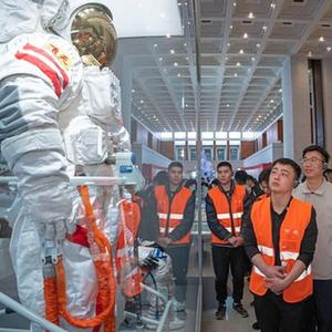 4月23日,中建三局順義航天產(chǎn)業(yè)園項目一線(xiàn)建設者在參觀(guān)“逐夢(mèng)寰宇問(wèn)蒼穹——中國載人航天工程三十年成就展”。