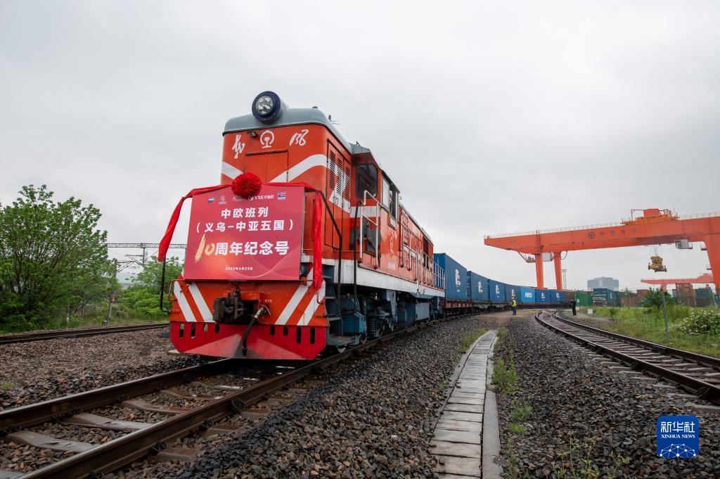 當日,載有100標準箱貨物的“義烏-中亞五國10周年紀念號”中歐班列在義烏西站鳴笛啟程,前往中亞五國,該趟列車(chē)也是義烏與中亞五國間開(kāi)行的第2024列中歐班列。