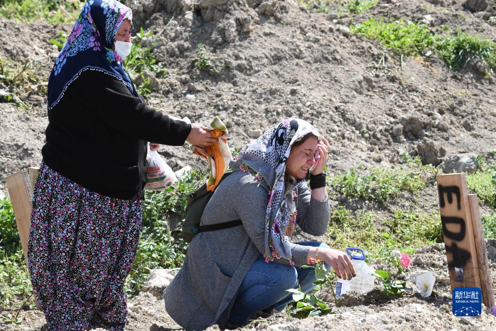 4月23日,人們在土耳其哈塔伊一處墓地悼念在地震中遇難的親人。新華社發(fā)(穆斯塔法·卡亞 攝)