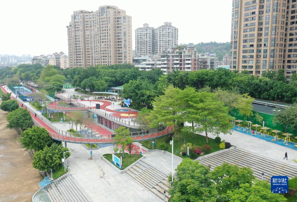 4月24日拍攝的福州市鼓樓區西河智慧體育公園內智慧跑道、智慧健身器材及健身驛站等(無(wú)人機照片)。