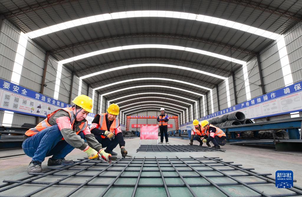 4月24日,建設者參加鋼筋綁扎項目比賽。