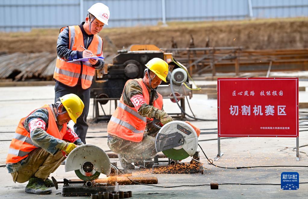 4月24日,建設者參加切割機操作項目比賽。