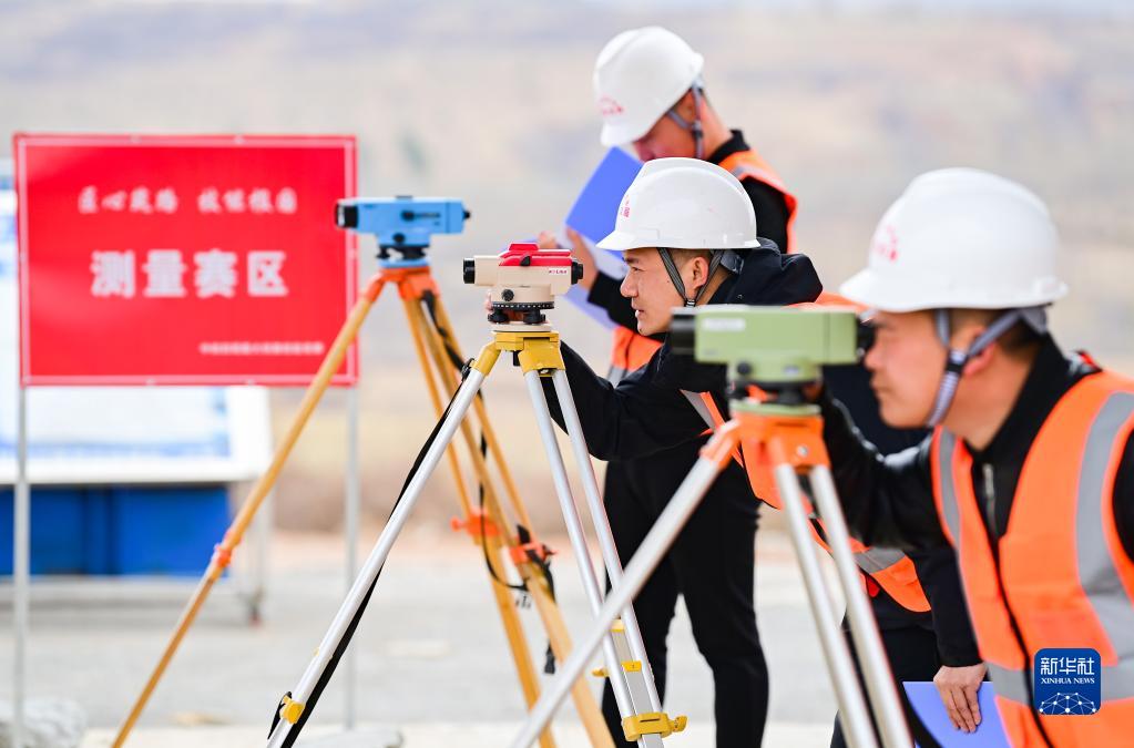 4月24日,建設者參加測量項目比賽。