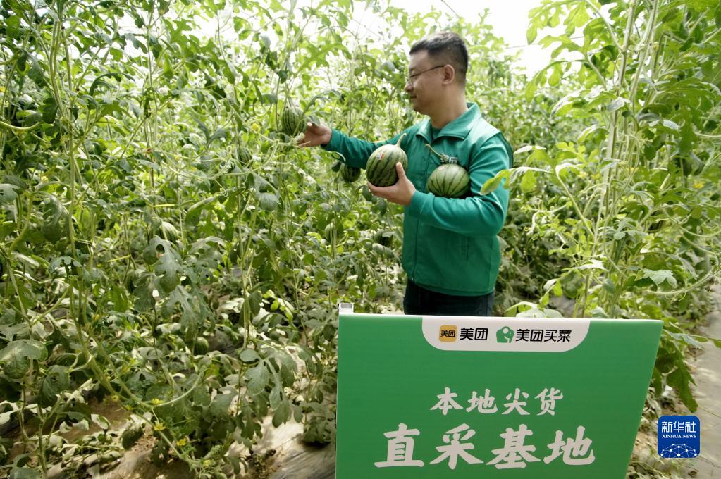 4月24日,電商平臺直采基地采購員在檢驗西瓜品質(zhì)。