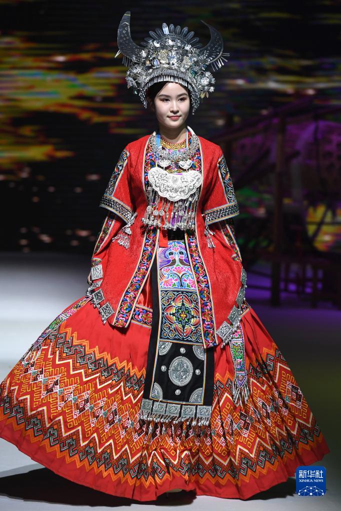 模特在廣西南寧市廣西文化藝術(shù)中心展示民族元素服飾(4月24日攝)。