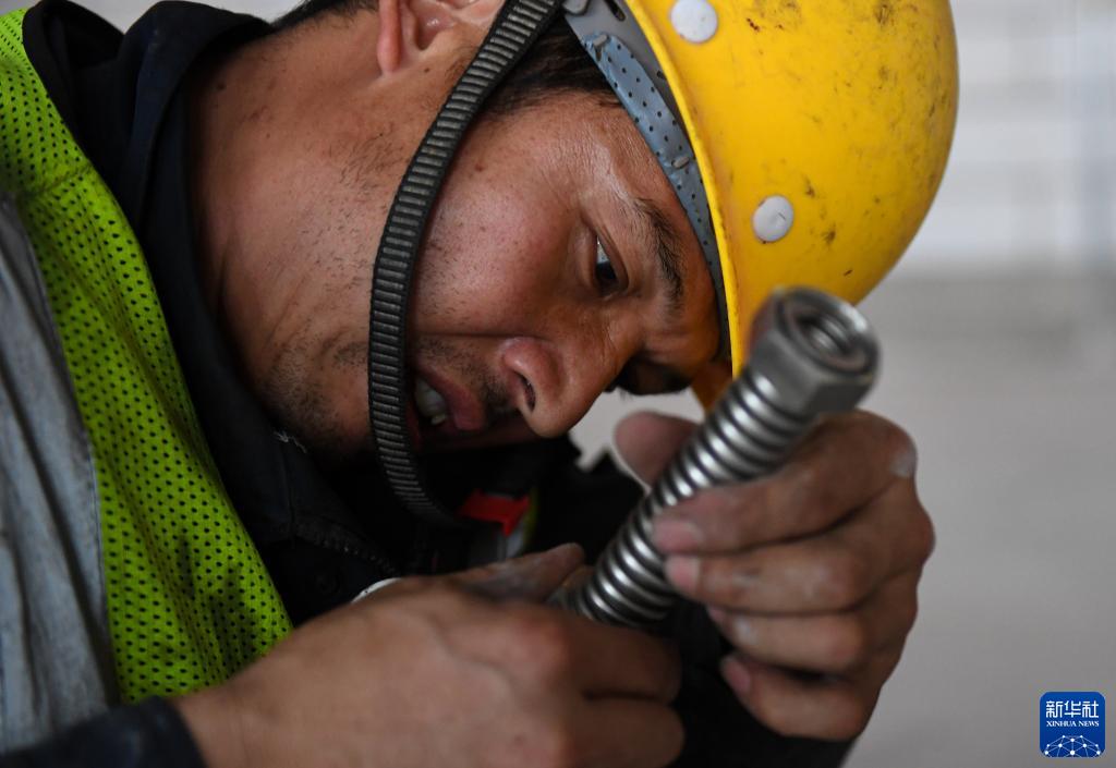 4月25日,在深圳前海泰康國際醫院項目工地,建筑工人參加閥門(mén)組裝工藝技能比拼。