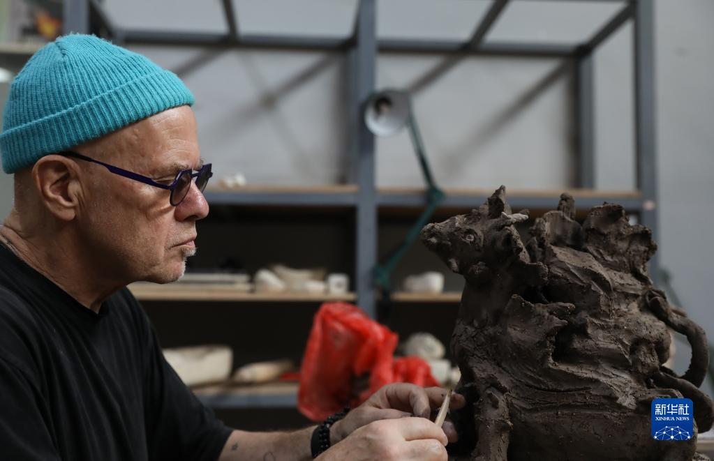 托爾斯滕·尤雷爾在江西景德鎮陶溪川陶瓷文化創(chuàng )意園自己的工作室內創(chuàng )作(4月20日攝)。