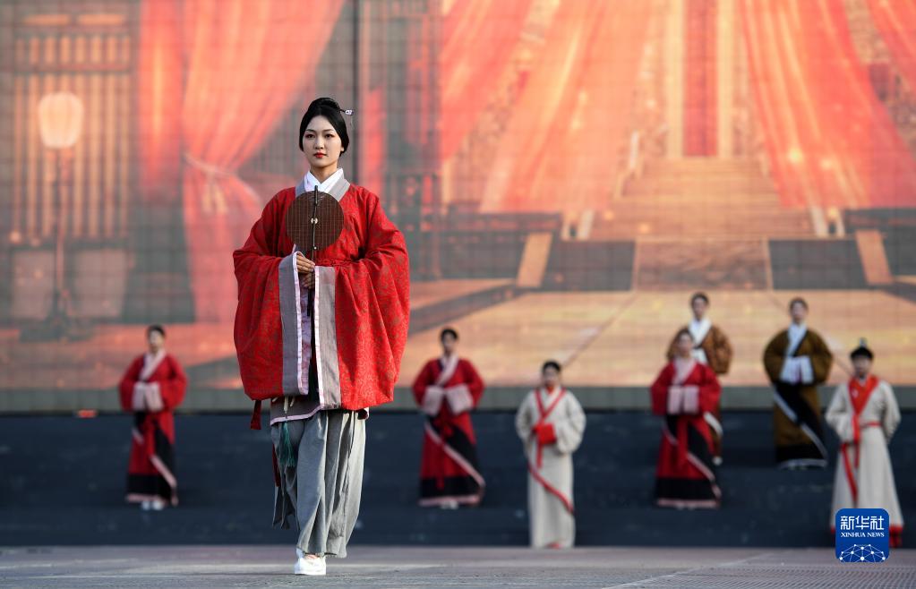 4月25日,華服走秀在西安大唐不夜城步行街舉行。