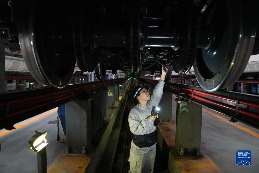 在中國鐵路哈爾濱局集團有限公司哈爾濱動(dòng)車(chē)段整備庫,“雪絨花”女子班組的機械師們正緊張地為動(dòng)車(chē)段配屬的動(dòng)車(chē)組進(jìn)行檢修作業(yè),為即將到來(lái)的“五一”小長(cháng)假鐵路運輸做好運力安全保障。