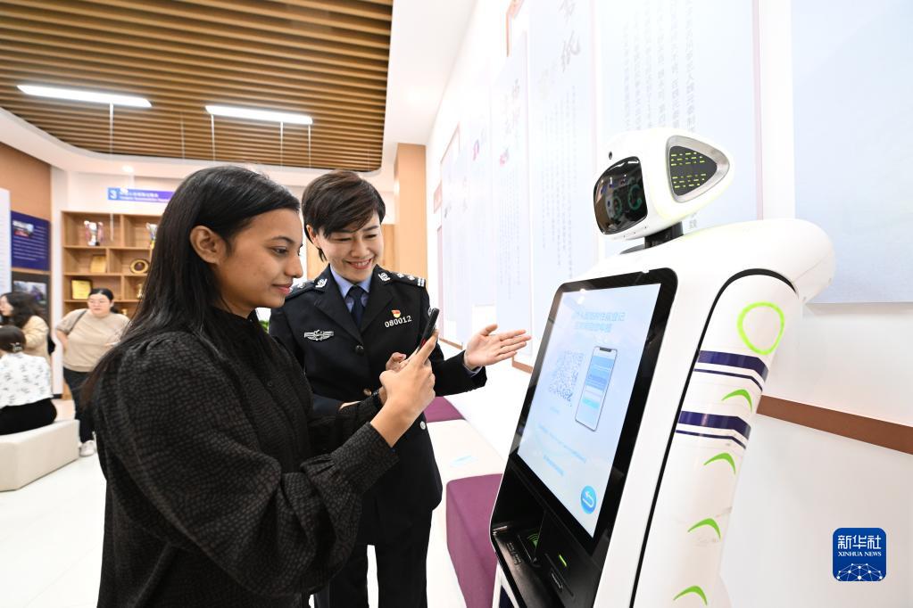 4月26日,在天津工業(yè)大學(xué)出入境事務(wù)服務(wù)中心,天津市公安局出入境管理局民警協(xié)助留學(xué)生通過(guò)網(wǎng)上系統進(jìn)行境外人員臨時(shí)住宿登記。