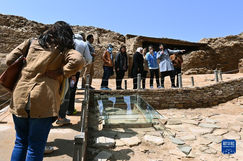 4月26日,外賓在陜西石峁遺址皇城臺遺址參觀(guān)調研。