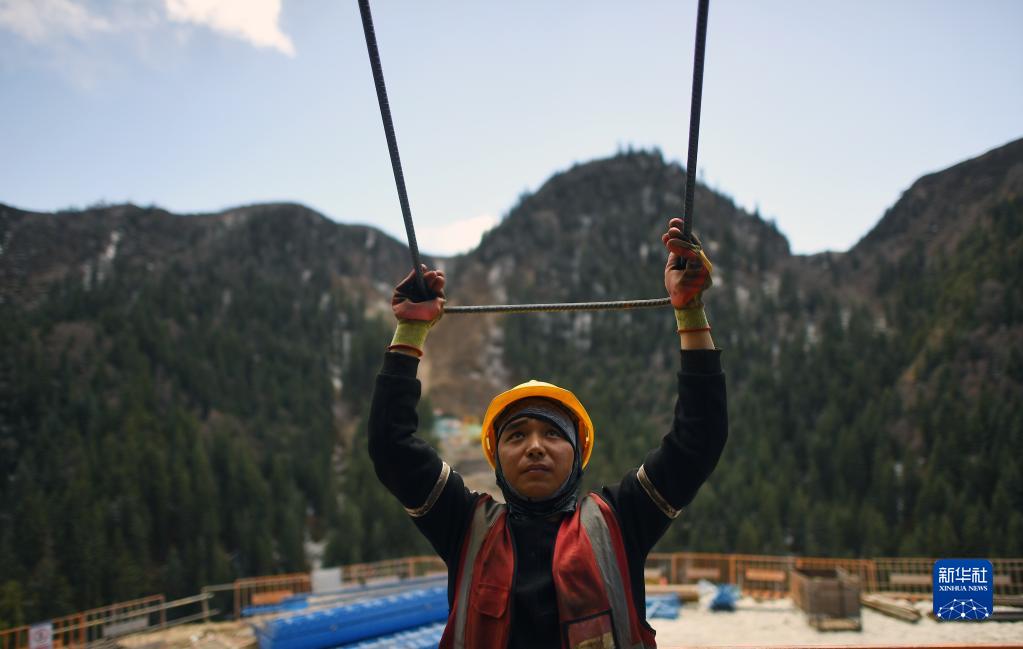 4月26日,中鐵十一局施工人員在同賽公路扎毛河特大橋項目現場(chǎng)作業(yè)。