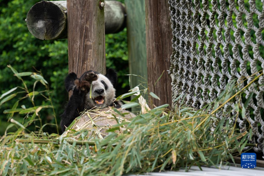 這是4月25日在美國田納西州孟菲斯動(dòng)物園拍攝的大熊貓“丫丫” 。