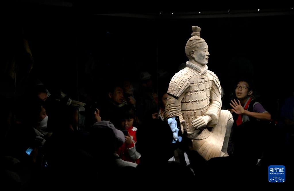 4月26日,游客在秦兵馬俑二號坑遺址內參觀(guān)跪射俑。