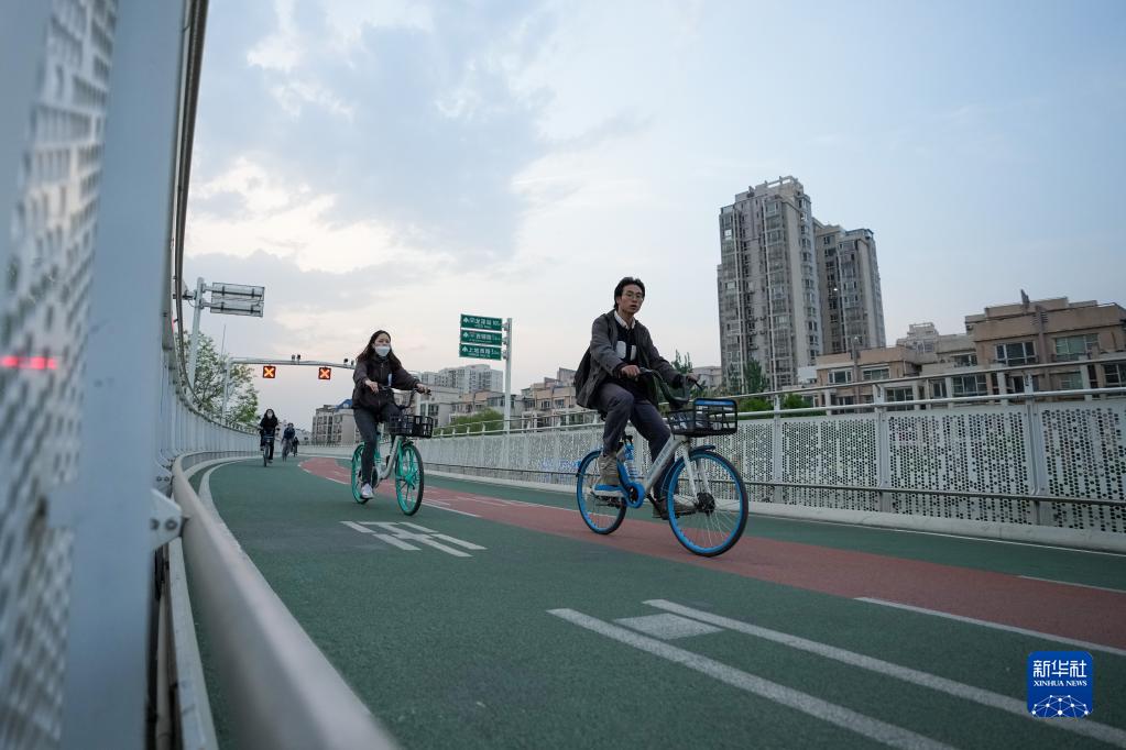 4月17日,市民在北京自行車(chē)專(zhuān)用路上騎行。北京自行車(chē)專(zhuān)用路是國內首條通勤用自行車(chē)專(zhuān)用路,道路全長(cháng)6.5公里。
