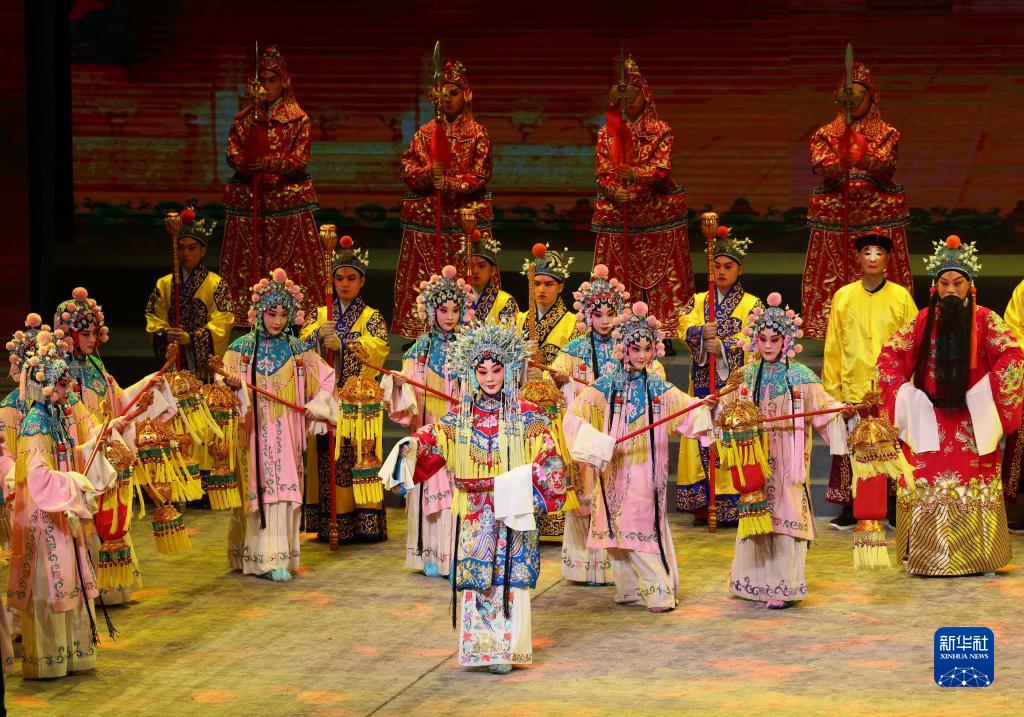 4月26日,演員在開(kāi)幕式演出現場(chǎng)表演秦腔、晉劇、滇劇、河北梆子等多劇種版《大登殿》。