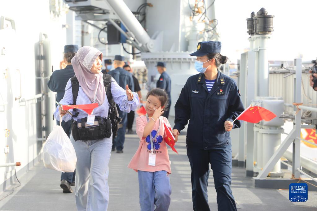 當地時(shí)間4月26日,中國海軍導彈驅逐艦南寧艦、綜合補給艦微山湖艦緊急駛赴蘇丹,執行撤離我在蘇丹人員任務(wù)。這是撤離人員登上微山湖艦。