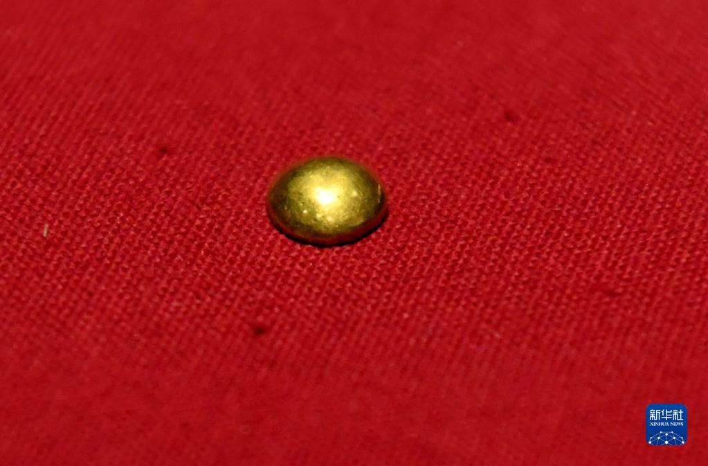 這是曹操高陵遺址博物館內展出的金紐扣(4月22日攝)。