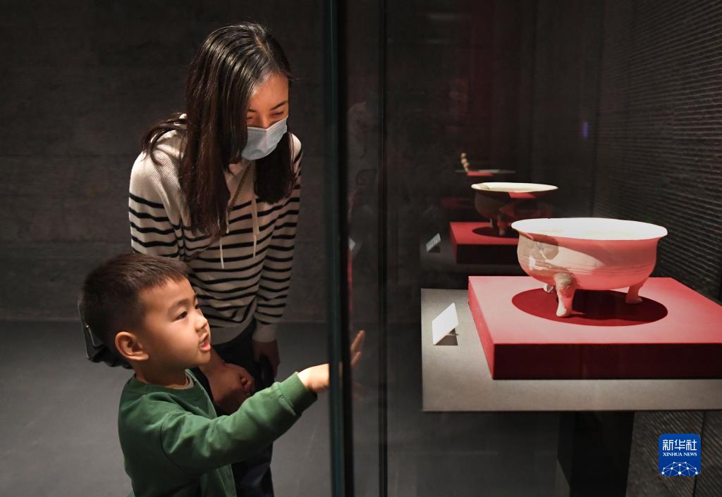 4月27日,參觀(guān)者在曹操高陵遺址博物館內觀(guān)看展品。