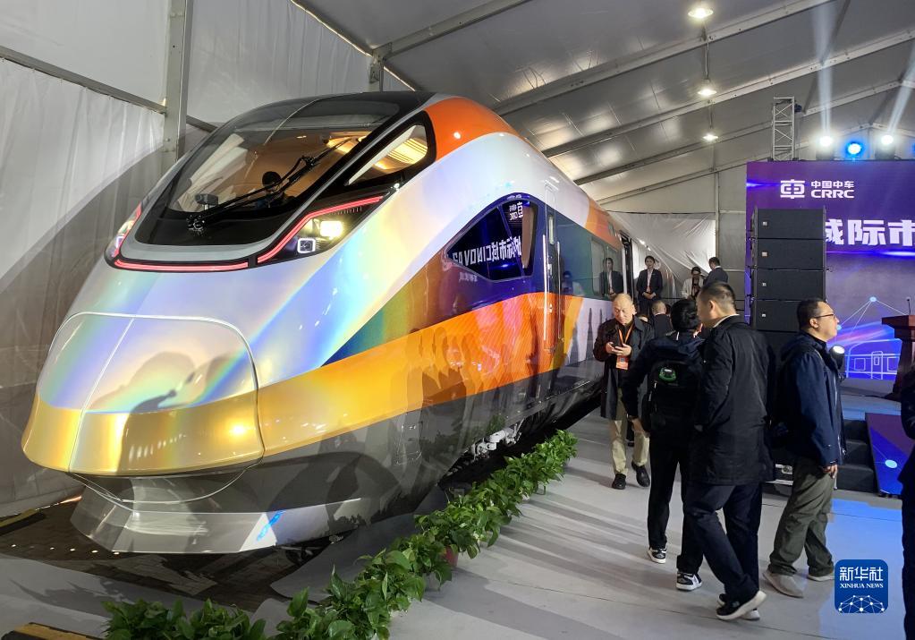 4月27日,與會(huì )者在參觀(guān)中車(chē)四方股份公司新發(fā)布的我國新型城際市域智能列車(chē)CINOVA2.0。