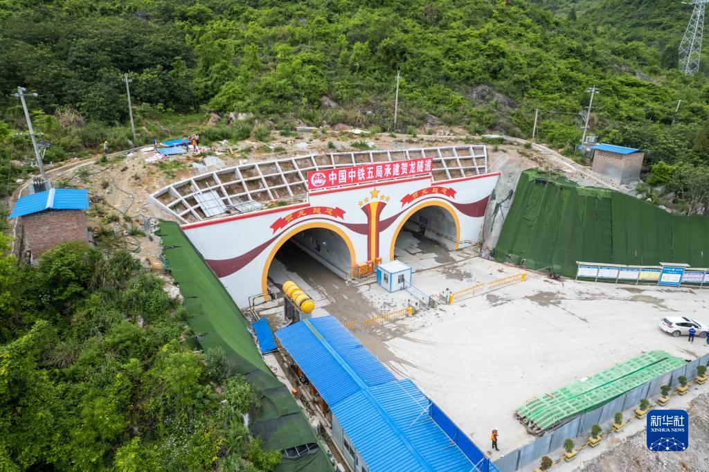 這是4月27日拍攝的湖南桑龍高速賀龍隧道(無(wú)人機照片)。