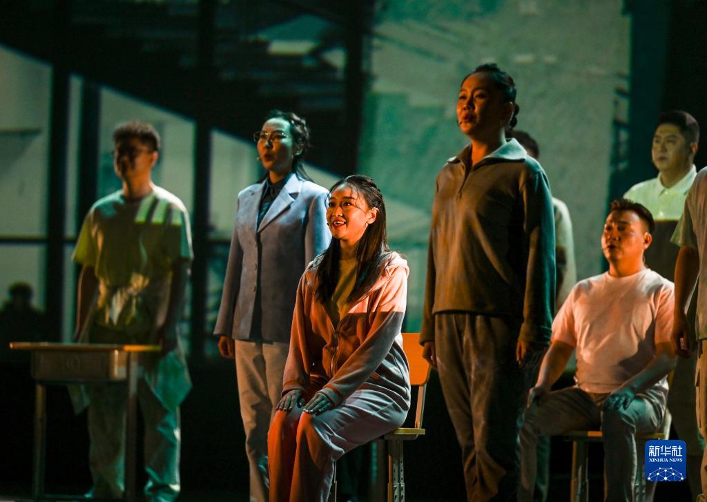4月27日,演員在話(huà)劇《天邊的草原》中表演。